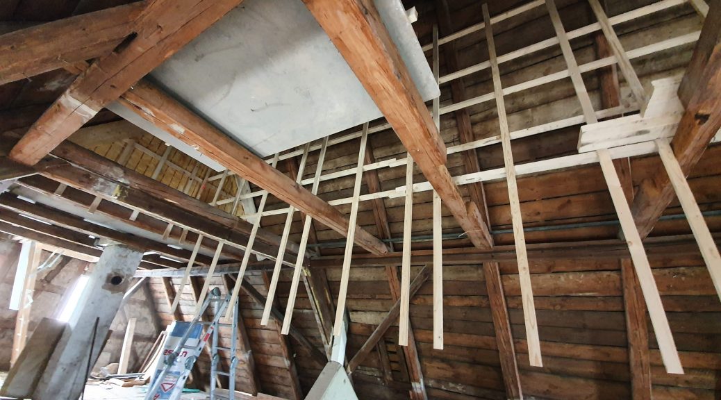 Wir haben ja schon länger die Treppe in den dritten Stock abgebaut. Ab da konnte man nur mit der Leiter hoch. Für Menschen mit latenter Höhenangst wie mich nicht so geschickt. Ich mache zwar alles und lasse mich nicht aufhalten, aber spätestens der Fakt, dass Arbeitsmaterialien da raufmüssen, machte eine Treppe unverzichtbar. Chris hat bestimmt, dass ich die mache. Aha. Okay. Also bekam ich zwei Bohlen und Bretter, Schrauben, nen Schrauber, ne Wasserwage und nen Bleistift. Ja, ich hab ein…