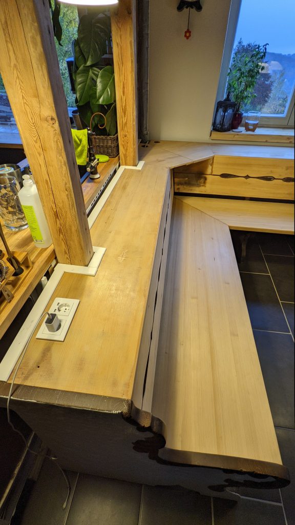 Chris hat daraus ausserdem Leisten für das Bad und Fussleisten für eigentlich überall geschnitten.