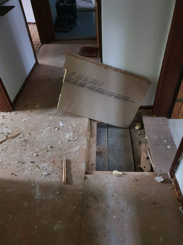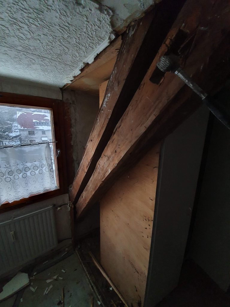 Auch in den anderen Ecken das gleiche Bild. Glück muss man haben. Auch mit anderen Vermutungen lagen wir richtig. Es waren alles Fehlböden, die wir fanden, leider sehr schlecht behandelt und versteckt. Das wird uns viel Arbeit bringen, aber es wird sich sicher lohnen.