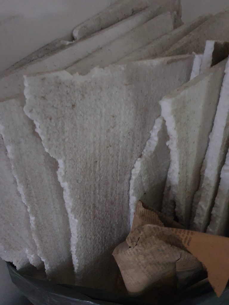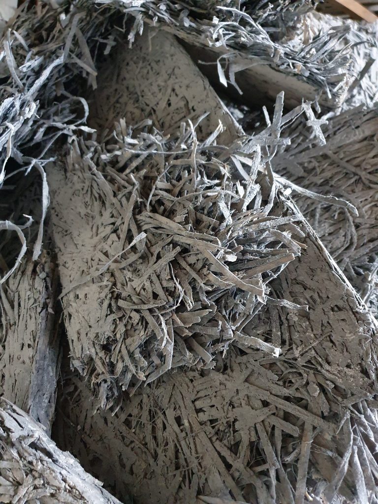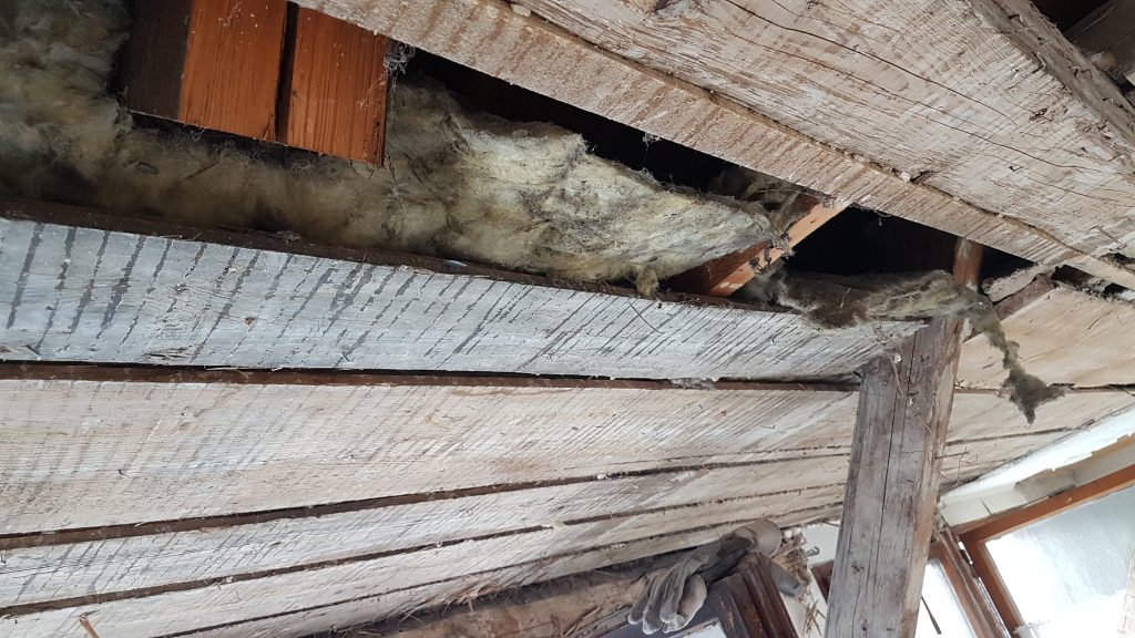 Rausrausraus muss das Dämmmaterial. Glaswolle grrr… Die wurde in den Decken bzw. Böden verwendet. Bei Hautkontakt führt das Zeug zu Hautreizungen und Juckreiz, man fühlt sich, als hätte man tausend Mininadeln unter der Haut. Wegen der Biopersitenz der lungengängigen Fasern (also die bleiben lange in der Lunge und können nicht abgebaut werden), wurden sie früher als möglicherweise krebserregend eingestuft. Also Ganzkörpervermummung und eine fähige Staubschutzmaske angelegt und das Zeug in luftdichte Säcke verbannt. Und dann raus.