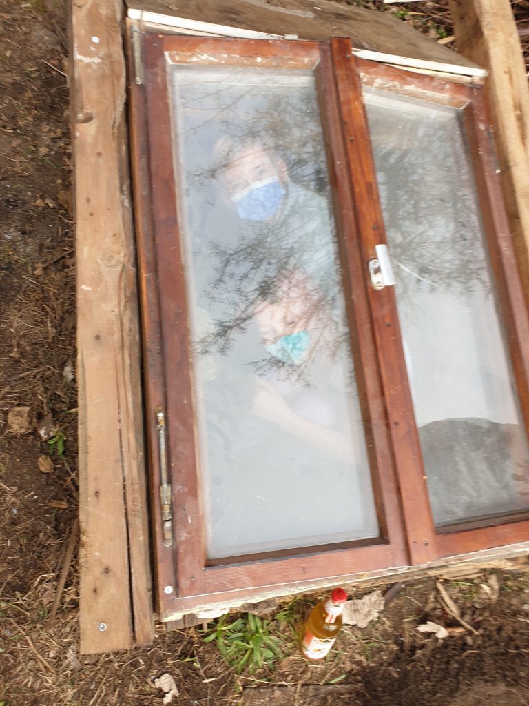 Und zum Geburtstag habe ich ein Frühbeet bekomen. Chris hatt ganz im Sinne des Upcyclings nur Reste aus dem Haus verwendet und seine Interpretation eines Hügelgrab-Frühbeetes geschaffen. Und da wachsen ganz komische Dinge drinn!