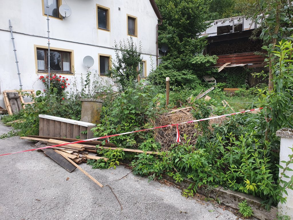 Und der Balkon ist weg! Naja fast… aber Chris hat schon das Geländer abgeflext und die ersten Bretter abgebaut. Ich fand ihn unglaublich mutig, ich wäre da nicht für alles Geld der Welt mehr rausgegangen!