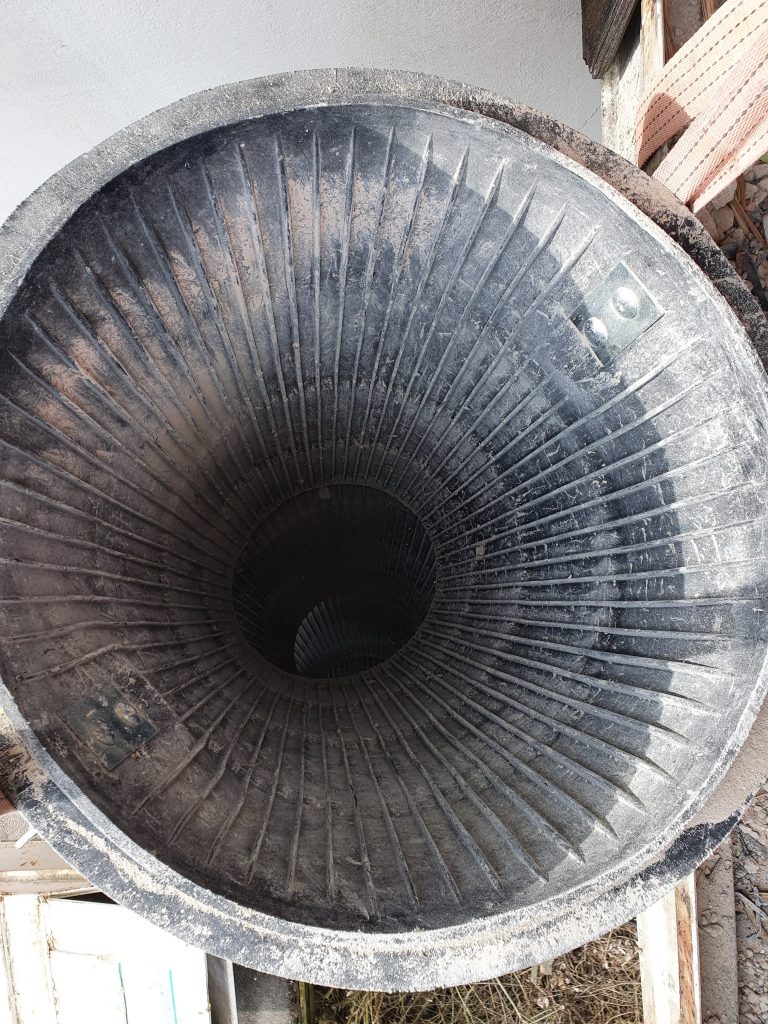 Man konnte dem Container quasi zusehen (wenn der Staub sich legte) wie er Stück für Stück und Stein für Stein voller wurde. Die Konstruktion der Schuttrutsche war zwar nicht perfekt, aber mit Entschlossenheit und Tatkraft überwindet man so einiges.