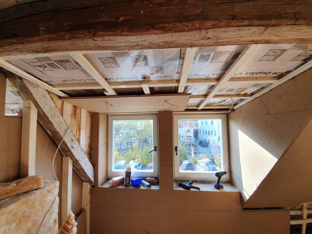 Dann Dämmen mit Tonnen von Klemmfilz, rollenweise Folie und Kilometern von Klebeband.