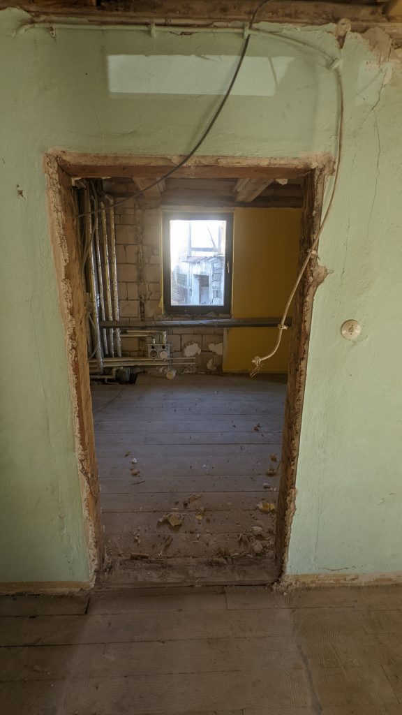 Hier werden wir es wieder mit Lehm verputzen und freuen uns auf tolle Räume!
