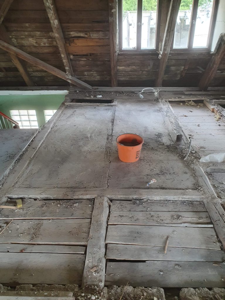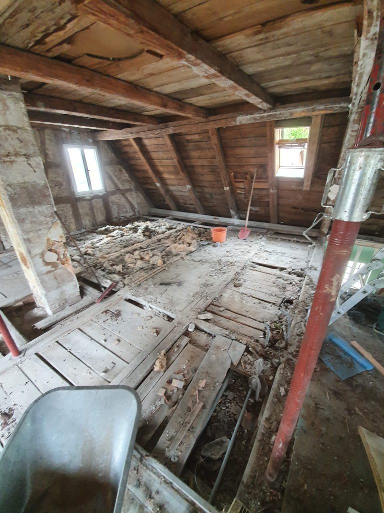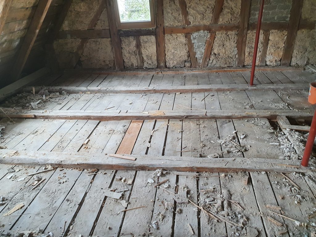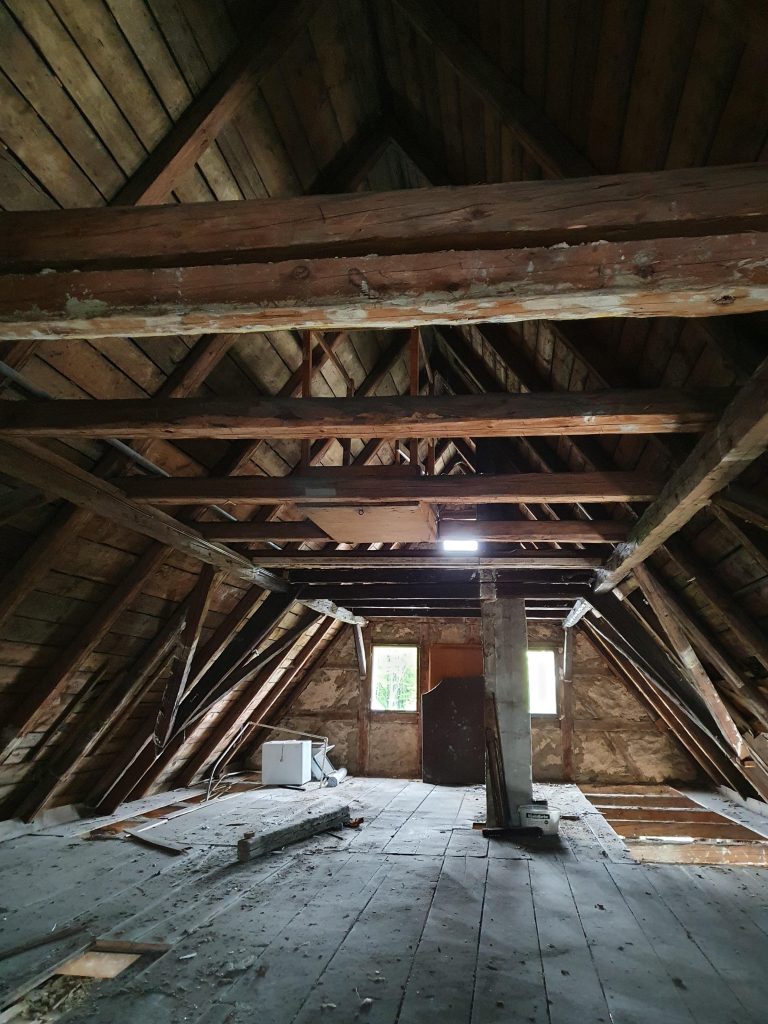 Der Spitzboden mit morschem Boden vor dem Abriss