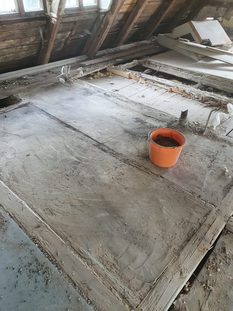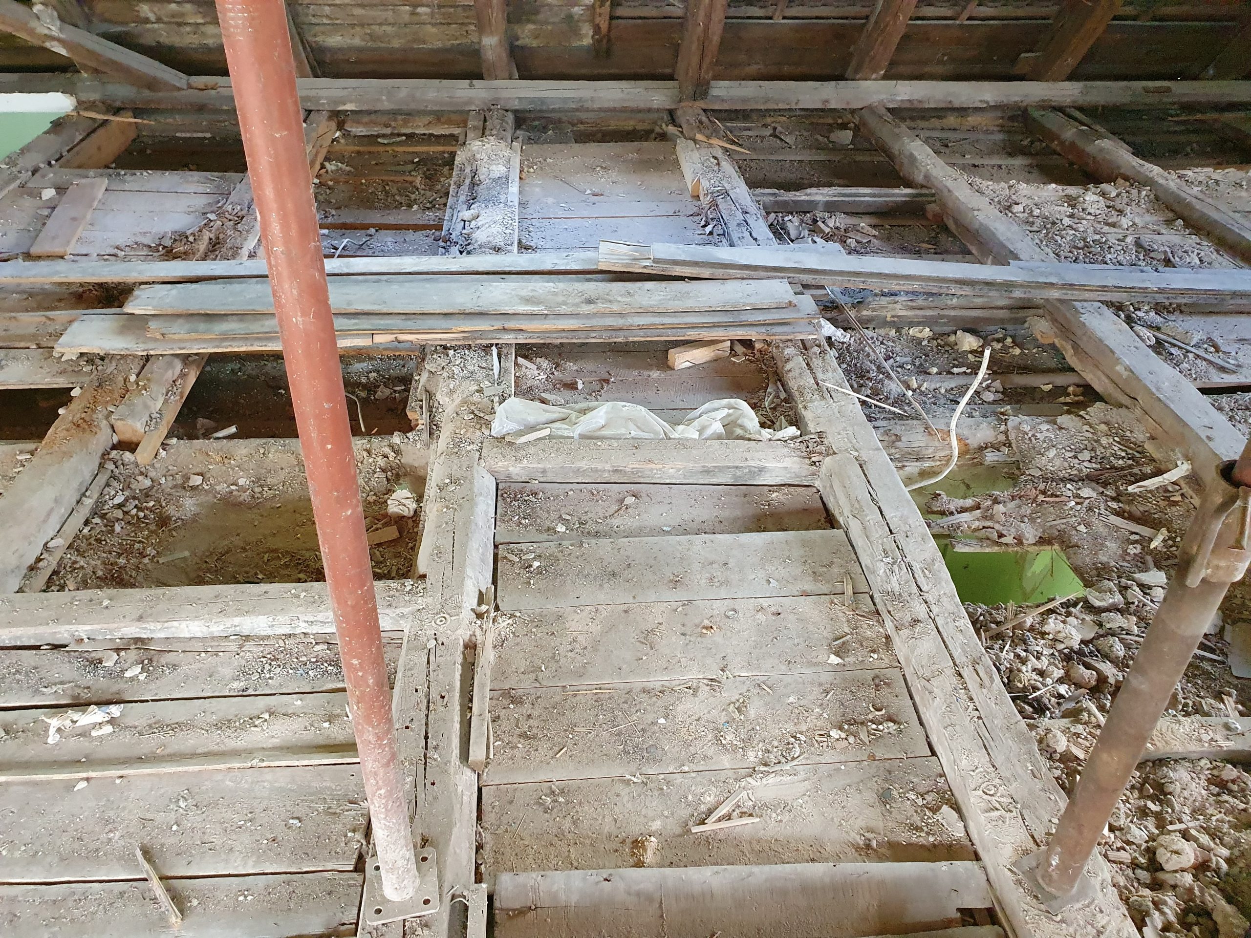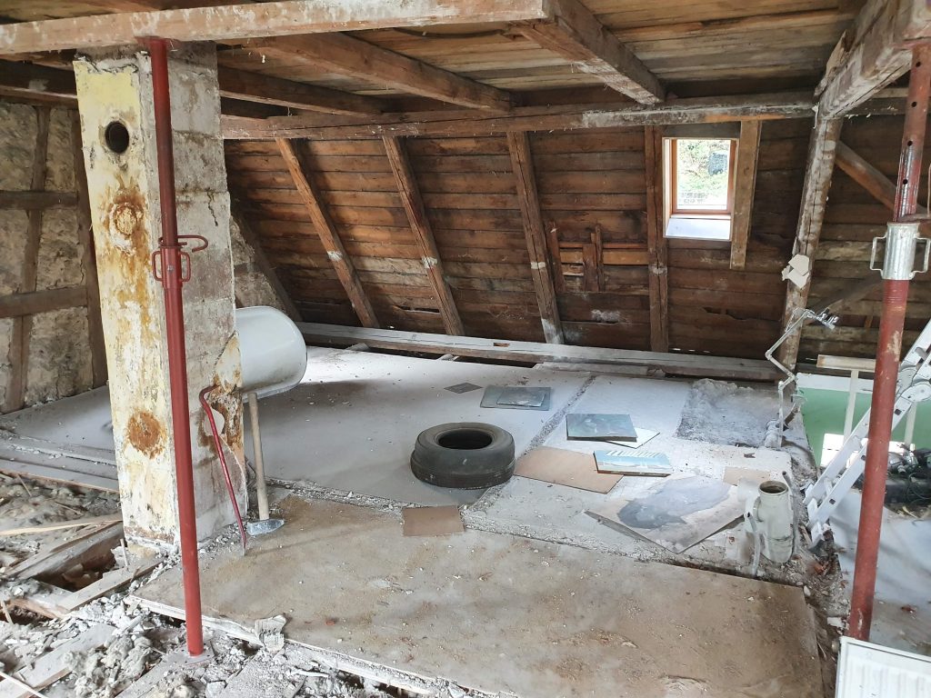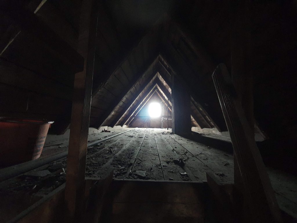 Der Spitzboden mit morschem Boden vor dem Abriss
