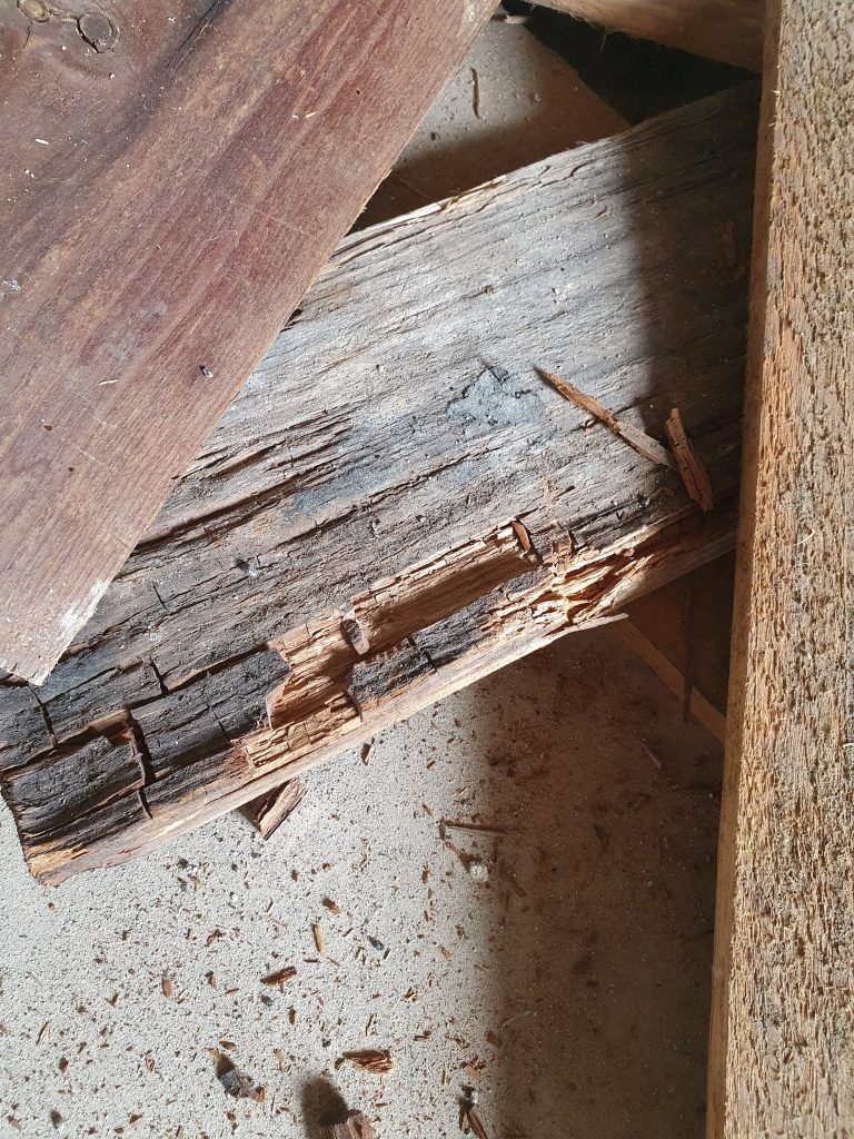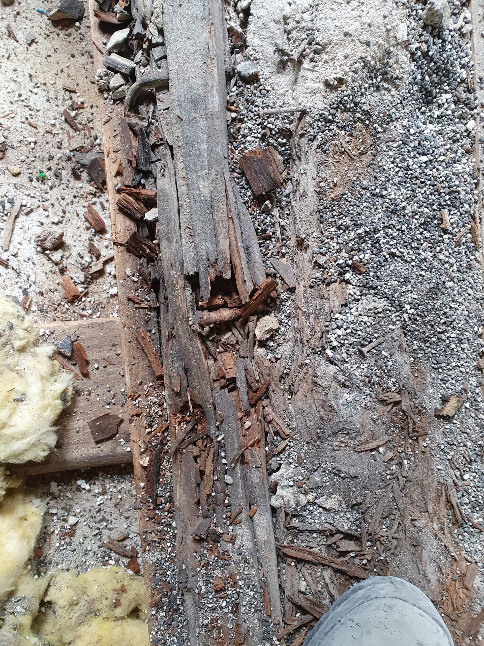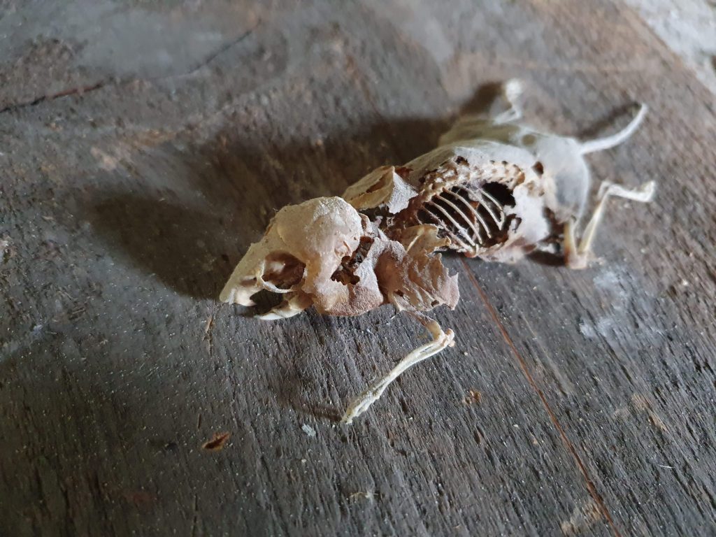 Unterdessen hat Bine wie so oft in diesen Tagen akribisch mit Atemmaske sich in die faulende, stinkende und verrottete alte Dämmschicht gegraben und diese in Säcke gepackt. Und dabei ist Sie nicht nur auf Zentimeter dicke Hinterlassenschaften von Tieren gestoßen, sondern auch auf die Tiere selbst… oder so ähnlich jedenfals.