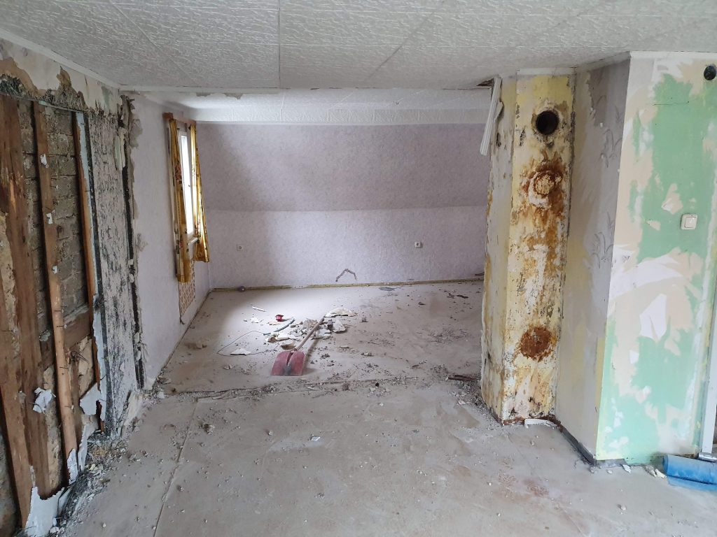 Der Raum war leer, der zweite Container voll. Aber das konnte ja so nicht bleiben! Mehr Schutt muss raus!