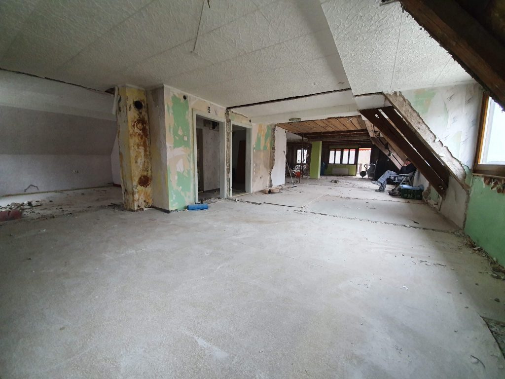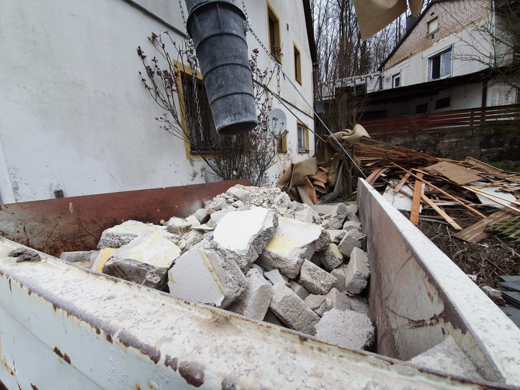 Am Ende des Tages hinterlassen wir wieder einen Schuttberg, einen Haufen Baumischschutt und Säckeweise Dämmwolle.